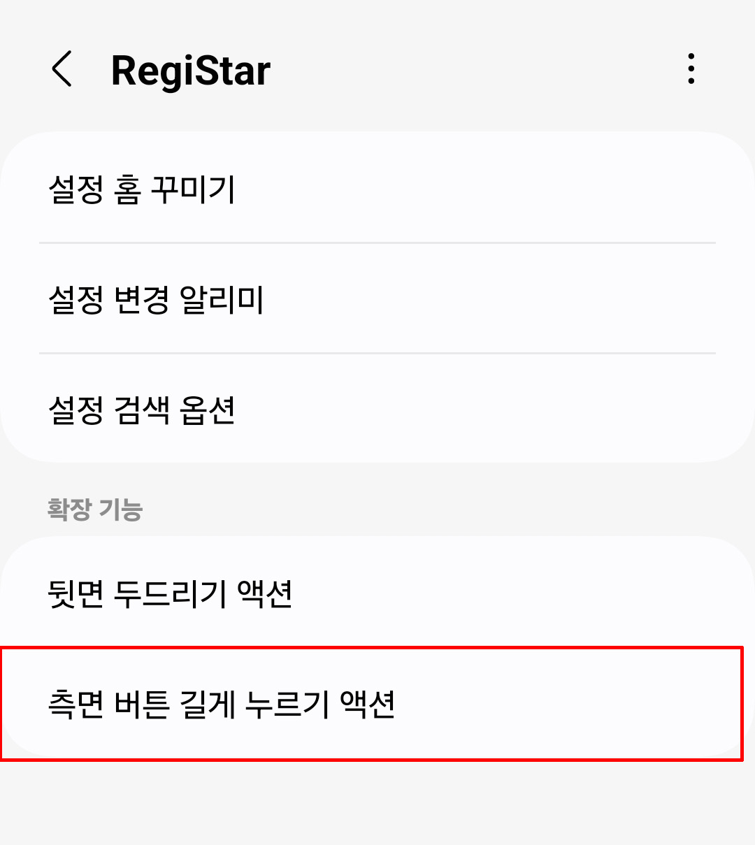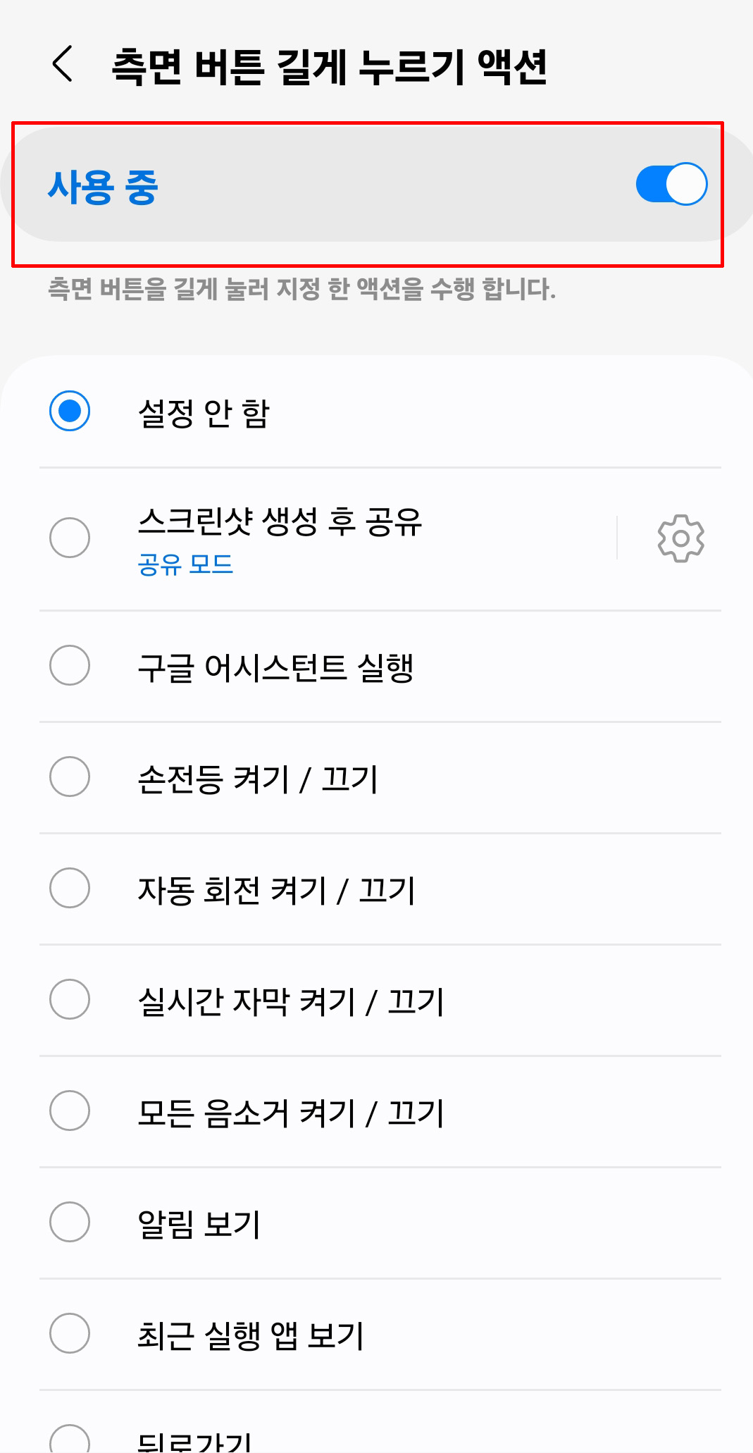 • '측면 버튼 길게 누르기 액션'을 클릭해서 들어갑니다.